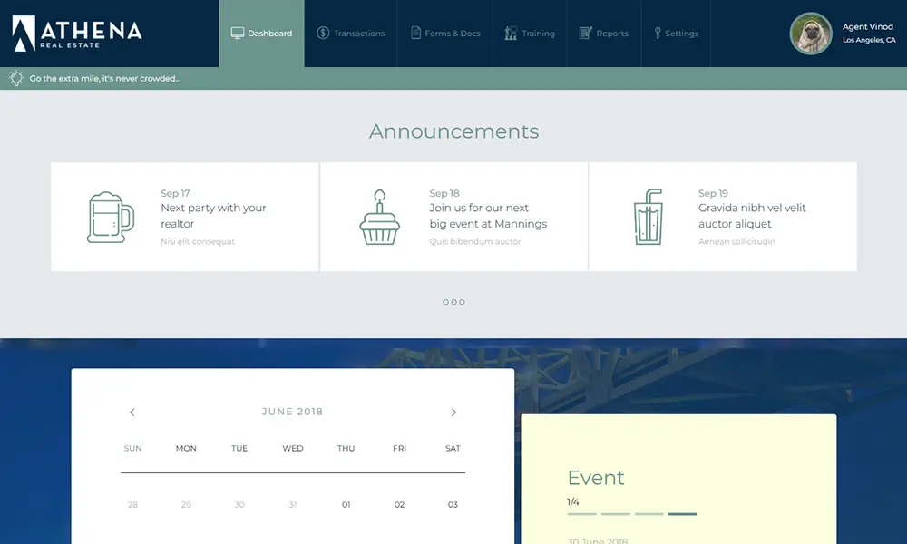 A custom dashboard converted from PSD to HTML with CSS, featuring a Calendar and custom JS.